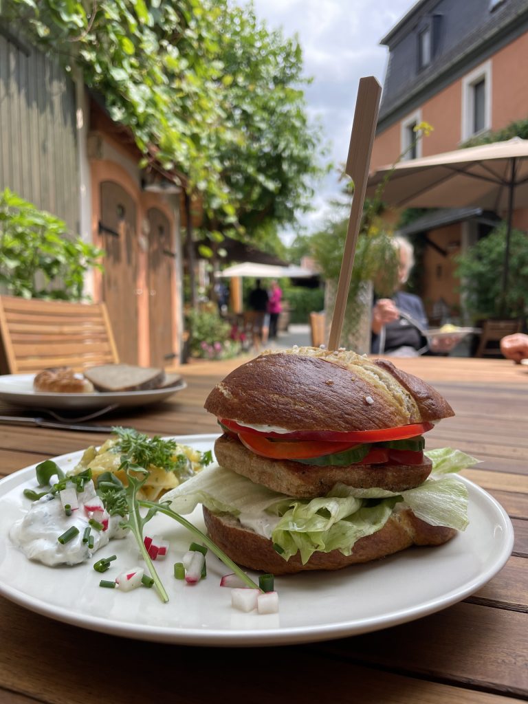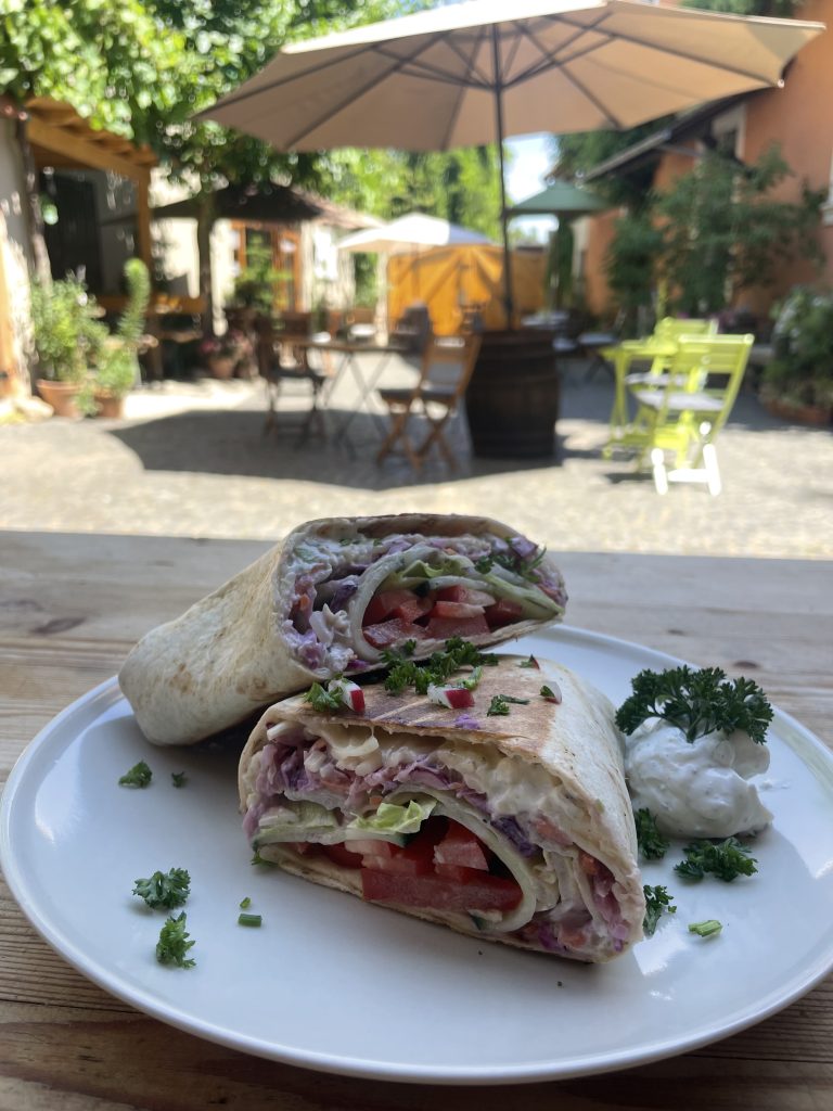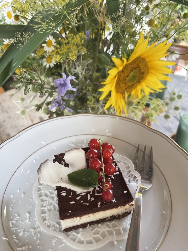 Impressionen Kaffee Dessert Raw Bounty Wrap vegetarisch Grillkäse im Laugenbrötchen Rohkost-Beerentörtchen